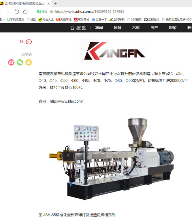 南京康發(fā)橡塑機械制造有限公司雙螺桿機擠出機及雙螺桿擠出造粒機榮獲全球知名雙螺桿擠出造粒機企業(yè)60強。