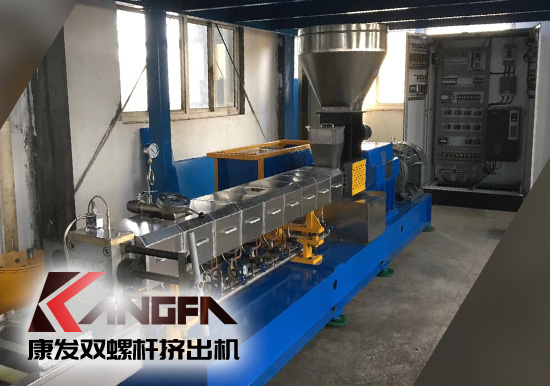 康發標準化雙螺桿擠出機設備運抵客戶車間,開箱驗收、安裝完畢、等待開機調試